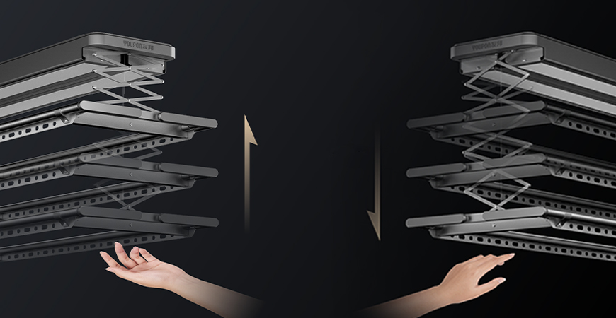 晾衣架下降至底部,輕抬托架即可觸發(fā)上升,方便省事;且晾衣架上升/下降過程中遇到障礙物會自動回升,保護(hù)使用者安全。