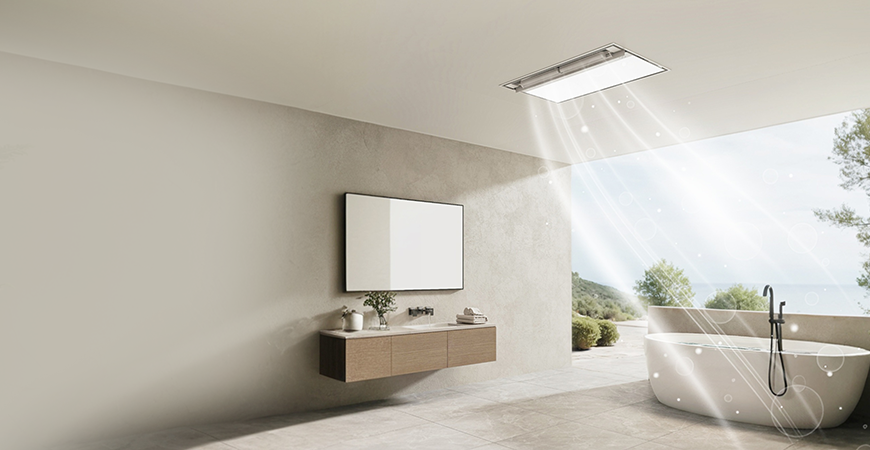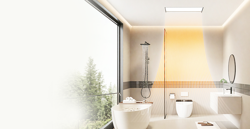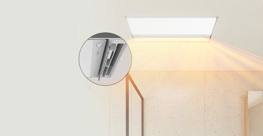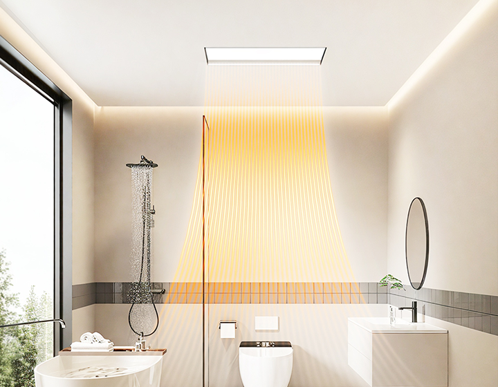 全機(jī)身純平設(shè)計(jì),安裝后與吊頂完全齊平,無(wú)縫融入浴室頂部。